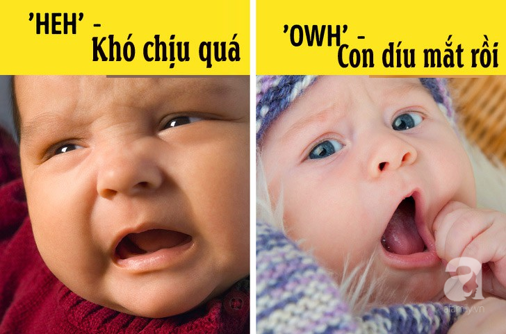 ‘Heh’ – Con cảm thấy không thoải mái!: Cảm giác khó chịu sẽ khiến cho em bé di chuyển, và giật tay chân của chúng. Tất cả những chuyển động này góp phần tạo ra âm thanh ‘Heh’, đặc biệt là khi miệng của em bé hơi mở.
