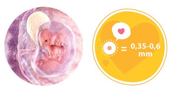 Ở tuần thứ 6, em bé có kích thước tương đương một hạt đậu. Chiều dài trung bình của thai nhi tuần thứ 6 là khoảng 5-8mm và sẽ tăng gấp đôi trong tuần tới!